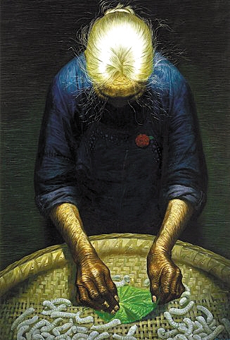 今天要给大家分享的一幅画是罗中立的《春蚕》。