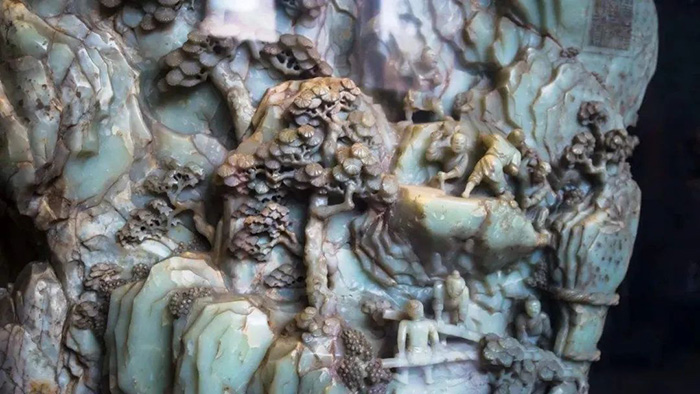 大禹治水图玉山这件文物是中国玉器宝库中用料最宏,运路最长,花时最久,费用最昂,雕琢最精,器形最巨,气魄最大的玉雕工艺品,也是世界上最大的玉雕之一。