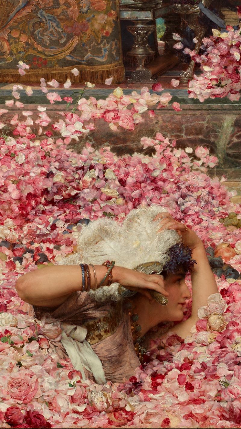 但在这铺天盖地的粉色花瓣之下,其实藏着的是一个令人战栗的残酷故事。那些在粉红花瓣之下的人们,并不是在玩,而是猝不及防地被埋住了。当时埃拉加巴卢斯正举办宴会,他事先准备了大量的花瓣,放在一个可翻转的天花板上,再叫来一群受邀的宾客,在他们毫不知情的情况下,把花瓣倾倒下来,压住了这些人,并最终导致不少人因窒息而亡。