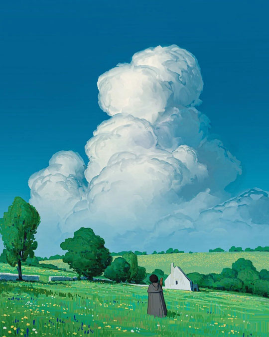 这些插画都是一位叫 Alariko的艺术家的作品,他的每一幅作品都能感受到宫崎骏动画的画面感。这种类似宫崎骏动画的治愈系画风为他吸引了不少粉丝。作品中传递出宁静,平和以及温暖的情感,引发了观众们内心深处的共鸣。通过细腻的线条和丰富的细节,他展现了一个充满温暖和希望的世界,让人们感受到生活中美好的一面。