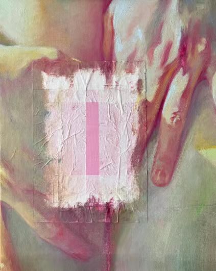 杨恒琪:“因为我有很大一部分的作品都是以女人体局部为创作角度,虽然并没有描绘私密部份,但一直以来如果不在部分区域打码其实在互联网平台上根本发不出来,这种现象对我作品的分享其实起到了非常面的反馈,所以我想着干脆直接把“打码”画到我的画面中去,甚至会有一个更有趣的现象:明明我画的部位是正常的躯干局部,但因为打了码反而让观众对码下面的画面充满联想。同时在系列画到第二张的时候,发现打码的这个部份也可以用来作为负面情绪事物的“遮掩”或是“掩盖”:因为有了打码的部份,所以可以无视肢体接触后面的强迫或是压制,也因为有了打码的掩饰,可以只看到表面的美好。”