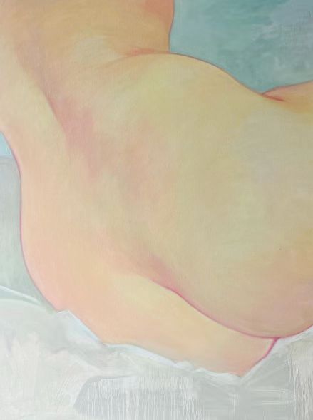 杨恒琪:“一开始做这个《不可视》系列只是因为很多油画人体明明非常美丽,但必须打码才能发到公共平台甚至无法在公开场合展出,想专门画一系列“只有打码才能展出的人体”这样略带讽刺意味的作品。”