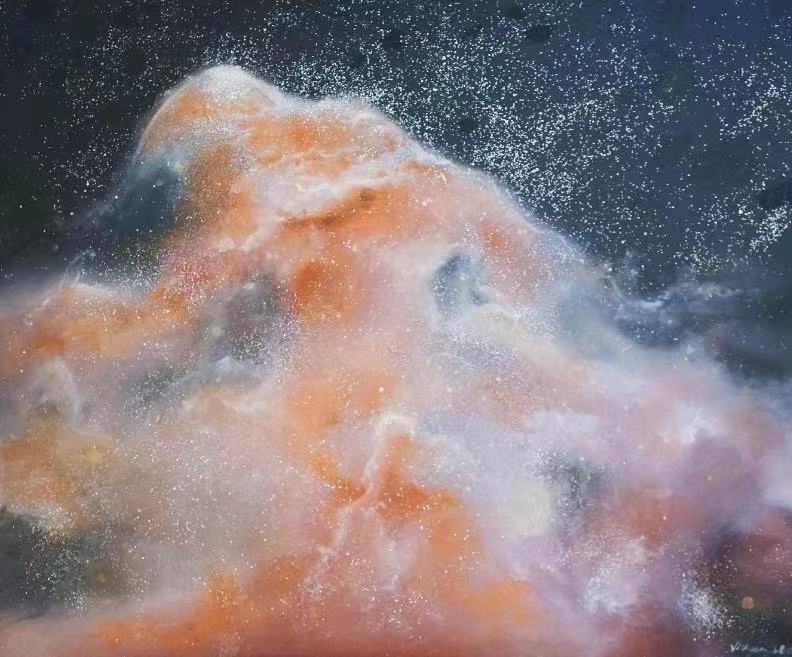 王珂潇:“对于作品的构图,色调,细节等等有基于绘画理性的思考,绘画的艺术语言全凭感性,是对世界,空间,宇宙,星空的灵感指引我创作每一幅作品。”