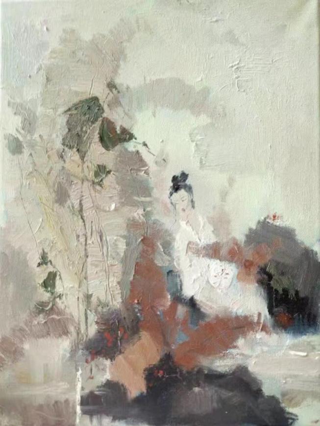 千万邦文化:“:在这《仕女》系列当中,您当时创作的题材为什么会想到往人文历史上靠近呢,对于这系列作品想传达给观众哪些的情感和表达?”
