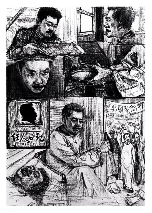 《民族脊梁_鲁迅》 40×60 纸本素描 2021