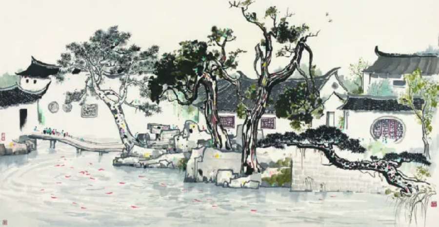 油画《周庄》(1997),成交价: 2.36亿港元,2016年保利香港