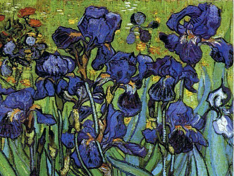 这幅《鸢尾花》是著名荷兰画家文森特·梵高一幅作品,创作于梵高去世的前一年1889年5月,当时梵高进了法国圣雷米的一间精神病院,在那里画成。作品现收藏在美国加州保罗盖兹美术馆。这幅《鸢尾花》被称为梵高在“圣米雷时期非常伟大的作品之一”。