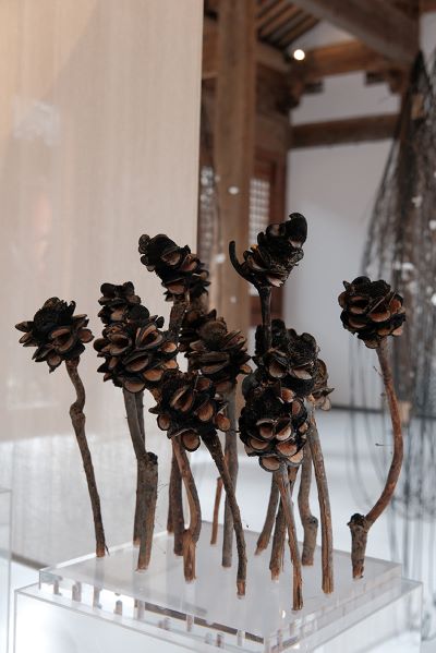 《再生长》系列作品,利用植物、农作产品、可降解再生材料,以架上艺术的展示形式,运用多维解构、组合、消减等艺术知觉性,实现个体与“物质”,再到群体之间的势能转换;艺术同建筑一样,是存放历史的地方,因为它能将琐碎的小事埋藏在时间化作的尘土中,让我们与多舛的命运和解,与浮华喧嚣的世界交手,并适应它、理解它、认同它。