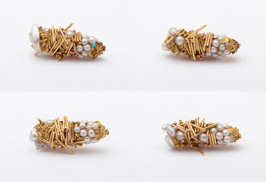 他选择会吐丝的石蚕蛾进行实验,这种昆虫会利用自己的唾液将沙粒、矿物等黏贴在身上,形成保护自己的外壳。世界上的每条河流,约有12000种不同的石蛾幼虫在爬行,这一自然属性激发了休伯特的艺术灵感,于是他收集石蚕蛾幼虫,并小心翼翼地用珍珠、宝石等代替粗糙的砂砾,想要打造不同寻常的巢穴,尽管分泌缓慢,但这些微小的昆虫仍然创造出了令人惊叹的奇迹。它们身上覆盖着昂贵的保护外壳,闪烁着珍珠般的光彩。这些昆虫原本不太好看的外貌,在与珠宝相结合后,变得闪耀夺目。