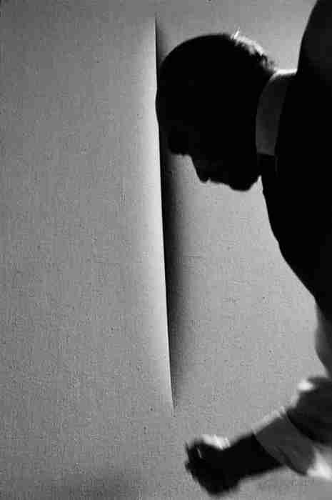 20世纪,最伟大幻想家之一,随便划几刀,扎几个洞就行,你或许会质疑,艺术家的门槛,真的这么低吗?其实,你仔细盯着这几个洞,盯着时间越长,你越能发现其中的玄机,有人看到了自己的梦境,有人甚至看到了逝去了的故人,封塔纳曾经患上过抑郁症,50岁的他提起刀,透过画布刺破二维世界,瞬间得到了心里的安慰。