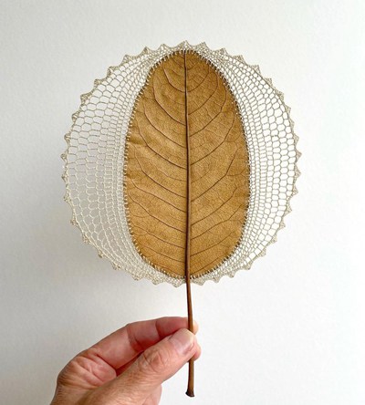 她将树叶化腐朽为神奇,当生活与树叶结合时,哪怕仅是一片落叶,它也配拥有生命。德国艺术家苏珊娜·鲍尔为落叶找到了新的生命,她将叶子清洗干净并晾干保持干燥,然后用棉线小心地编织出复杂图案,近乎完美的针法,让人们眼中无趣的枯叶焕发出新的光彩。