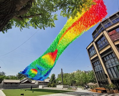 这个创意的艺术品是由美国艺术家Patrick Sheen创作的。他通过在城市楼宇之间建立联系,让人们感受时间的流逝。这座城市不是毫无人情的建筑,而是通过艺术和美好来感受生活之美,融入繁忙的生活中。如果这鱼群放得更低一些,我估计它们早就被人们抓个精光了吧。
