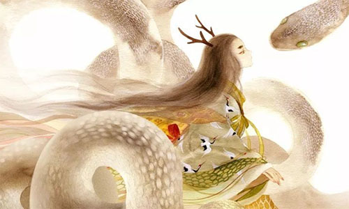 他的作品风格独特,充满了浓郁的东方文化气息。他擅长运用线条和色彩表达情感和思想,作品中常常出现各种动物和自然元素,如果用一个字来形容鹿菏的画那就是“仙”,一副《水形物语》中国版的插画让他名震世界,给人以深刻的启示和感受。